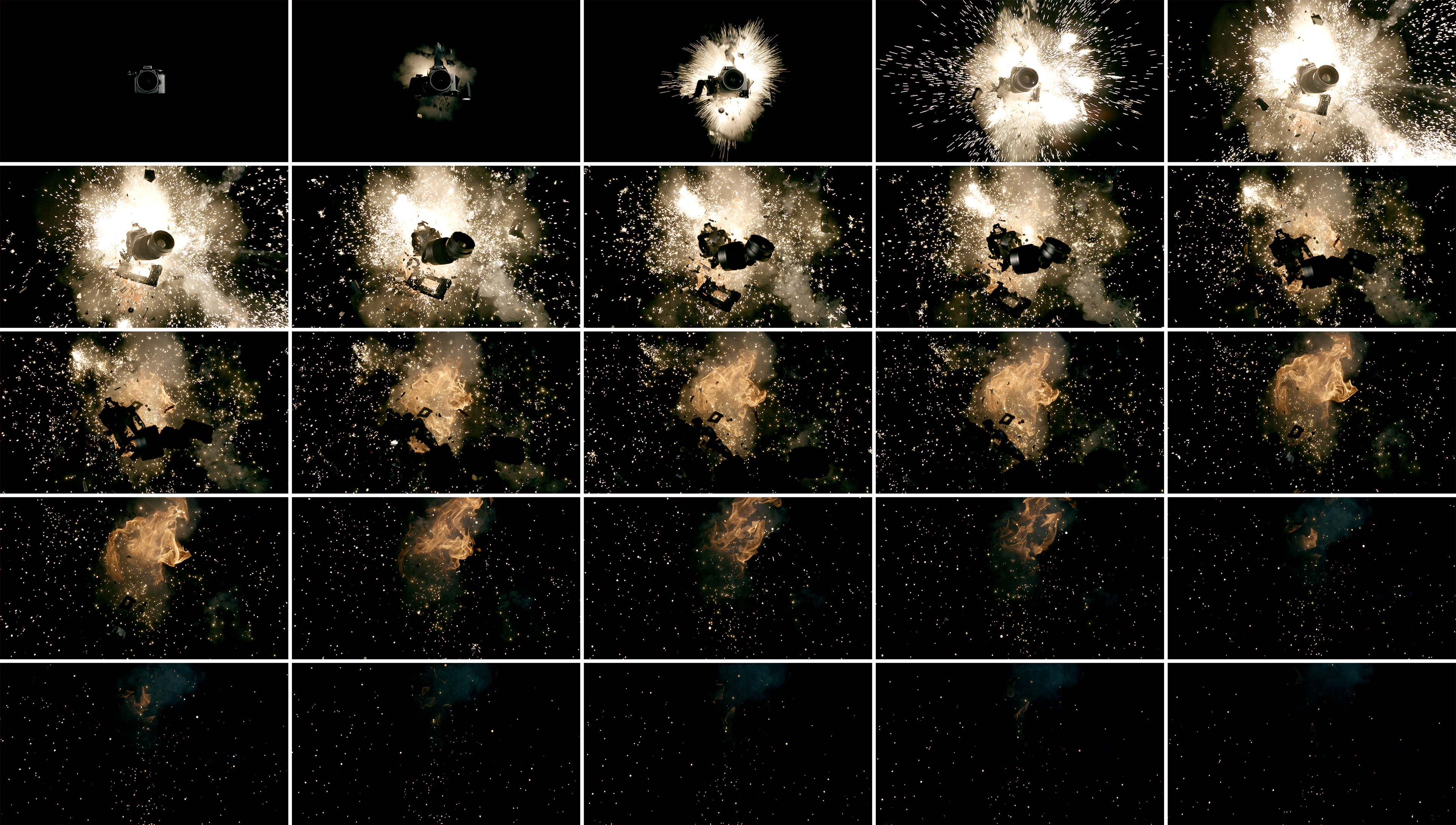 At the height of photography's great divide between analog and digital, as a gesture to our medium's endless cycle of technological death and rebirth, I blew up all of my cameras and started again. This decisive moment was captured in over 1,000 images per second with the most advanced camera available at the time.